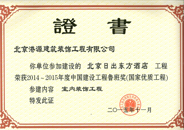 魯班獎——北京日出東方酒店