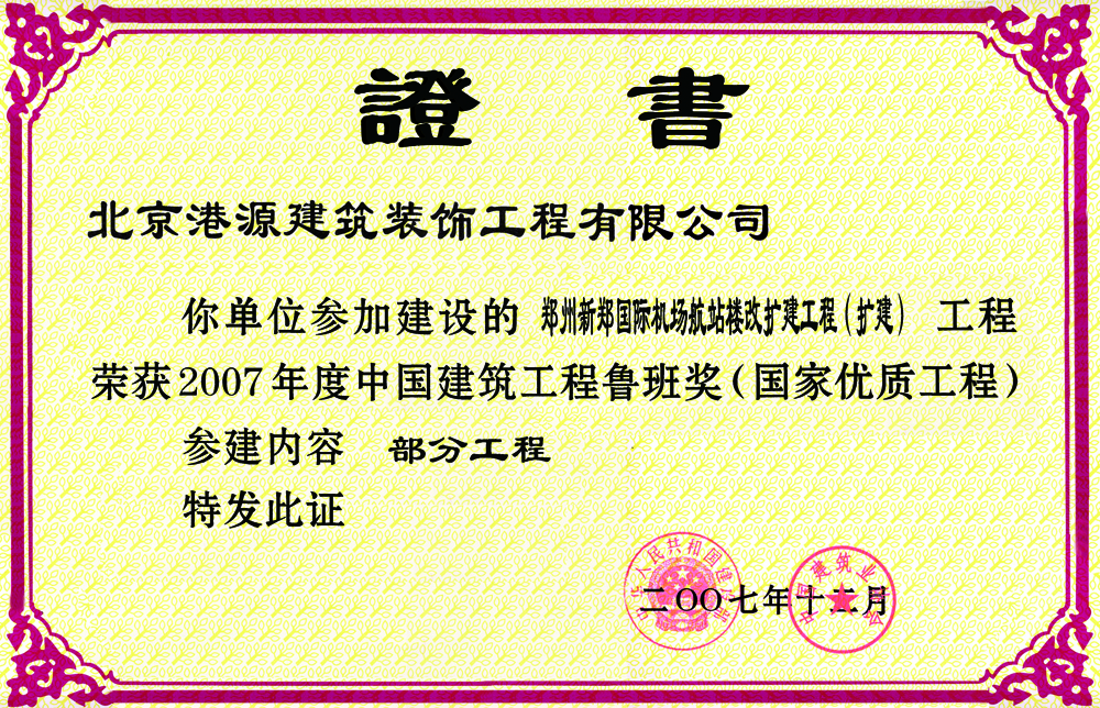 魯班獎——鄭州新鄭國際機場(chǎng)航站樓改擴建