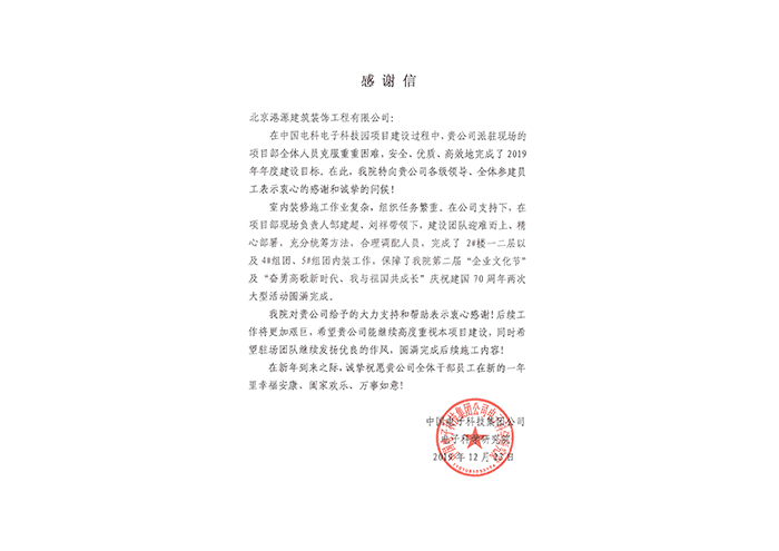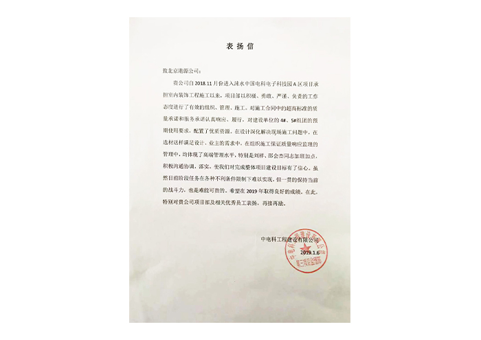 中電科工程建設有限公司表?yè)P信
